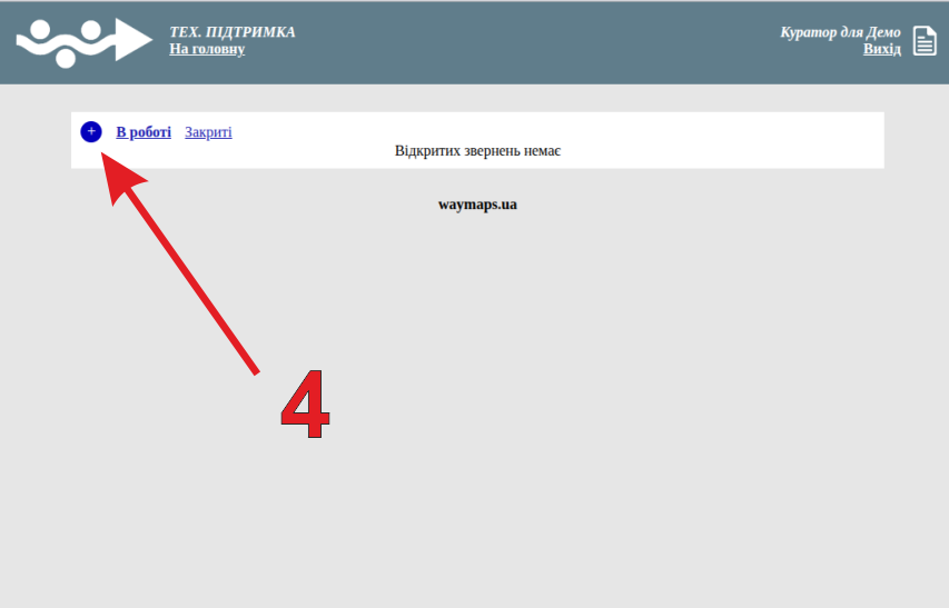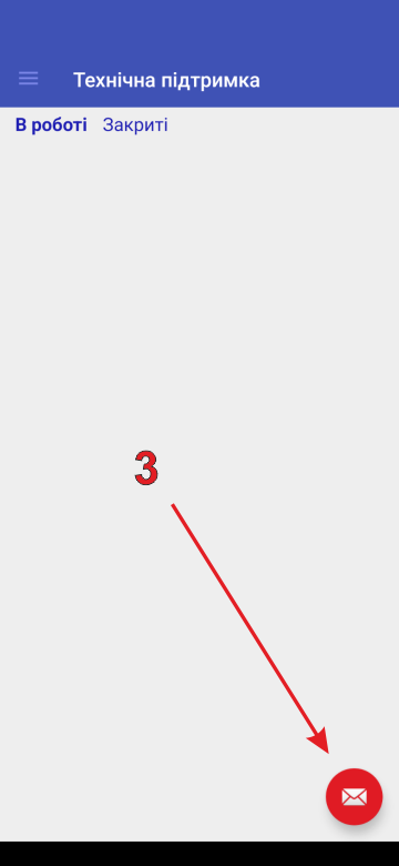 Відкривається екран звернень до Технічної підтримки. В ньому дві вкладки: "В роботі" та "Закриті". Якщо відкритих (в роботі) звернень у Вас немає, то перелік буде пустим. Якщо клацнути на звернення, то можна прочитати всю переписку по ньому.